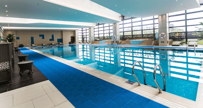 在設(shè)計健身房泳池時,要在泳池周圍預(yù)留足夠的安全通道